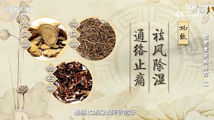青風藤、海風藤、絡石藤袪風除濕、通絡止痛。