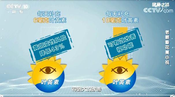 科學(xué)研究顯示,每天補充6毫克的葉黃素,可以降低43%的黃斑變性患病風(fēng)險,每天補充10毫克葉黃素,可以幫助改善視功能。