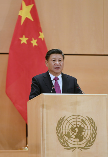 2017年1月18日,國家主席習近平在瑞士日內瓦萬國宮出席“共商共筑人類命運共同體”高級別會議,并發表題為《共同構建人類命運共同體》的主旨演講。新華社記者 饒愛民 攝