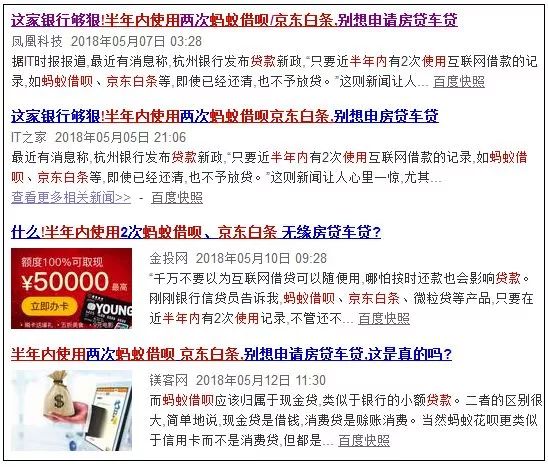 近日,一條《銀行新規:半年內使用過螞蟻借唄、京東白條的,一律不給貸款!》的消息在網絡上傳播。文章中稱杭州有銀行出新規:1.使用京東白條、螞蟻借唄,即便按期還款也會影響貸款。2.銀行出新規:半年內有過2次以上小貸記錄,不批貸。3.兩大銀行正式發聲:很難給使用支付寶借唄、京東白條的人放款。