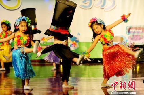 資料圖:孩子們在進行兒童節表演。卓忠偉 攝
