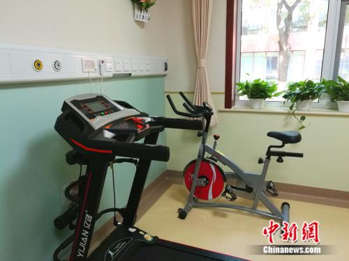 在北京老年醫院的關懷病房里,專門設置了談心室、功能房等。其中,功能房中還專門放置了一臺跑步機和一臺動感單車。