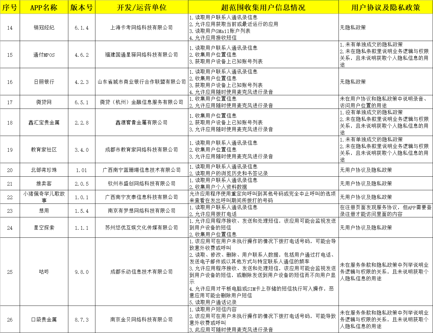 其中“西瓜視頻”“貝殼找房”“芒果TV”等42款A(yù)PP,存在超范圍讀取用戶通話記錄、短信或彩信,收集用戶通訊錄、用戶設(shè)備上已知賬號,超權(quán)限使用用戶設(shè)備麥克風(fēng)等突出安全問題。目前,廣東省公安機關(guān)已將有關(guān)監(jiān)測情況上報公安部通報屬地公安機關(guān)開展清理整治。擴散周知!(央視記者 陳旭婷 高天嬌)