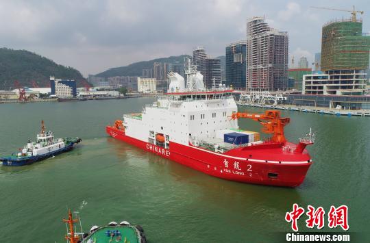 中國首艘自主建造極地科考破冰船“雪龍2”號抵達深圳