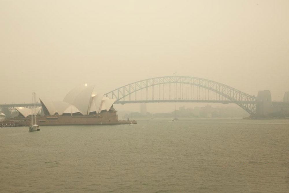 ●10日,澳大利亞東部山火持續肆虐,悉尼籠罩在煙塵中。