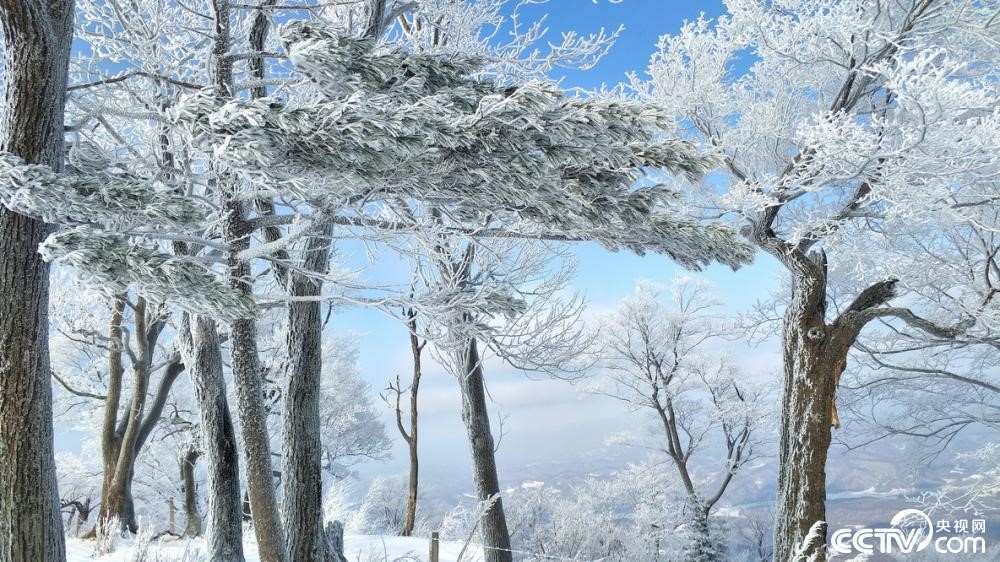 ●吉林通化四方頂子景區出現大面積的高山霧凇景觀,景色迷人,猶如仙境。?