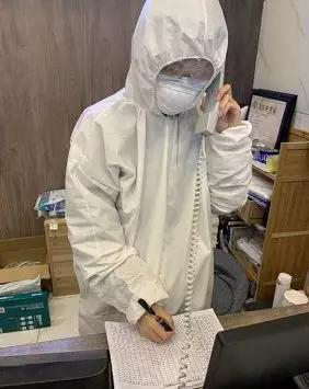 穿上防護(hù)服,戴上口罩和護(hù)目鏡,張迪就開(kāi)始了一天的工作:7:30協(xié)助分發(fā)早餐;8:30給每個(gè)房間打電話詢問(wèn)密接者體溫情況;12:00協(xié)助午餐分發(fā);16:00詢問(wèn)第二次體溫情況;17:30晚餐分發(fā),其間還要解答“客人”咨詢的問(wèn)題。