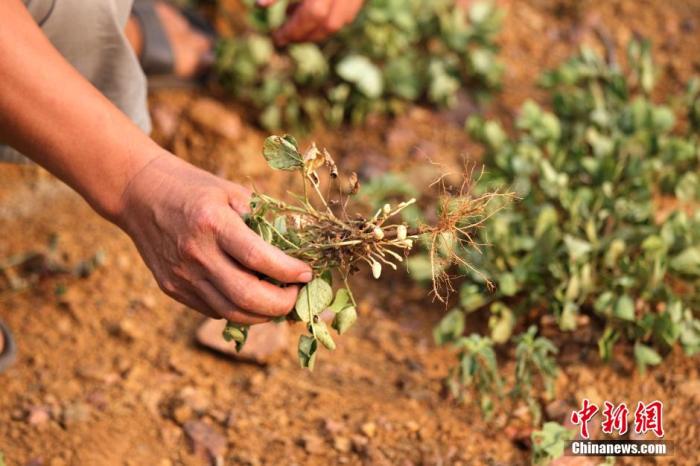 資料圖:2014年8月4日,河南嵩縣黃莊鄉付溝村,因為干旱地里的花生沒能結出任何果實。 中新社王中舉 攝