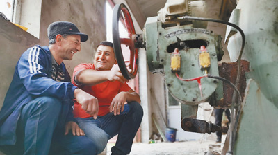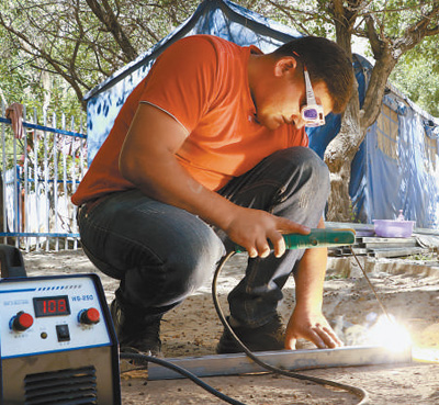 “柴油發電機噪聲大,吵得人耳朵疼,現在一插電直接就能開工了。”說著,阿米爾江拿起堆在地上的鐵皮材料開始工作,火花四濺,卻少了以往的噪音和難聞的柴油味。
