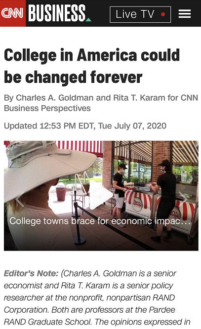 △CNBC報道《新冠肺炎疫情在今年秋天甚至永遠改變大學的學習生活》