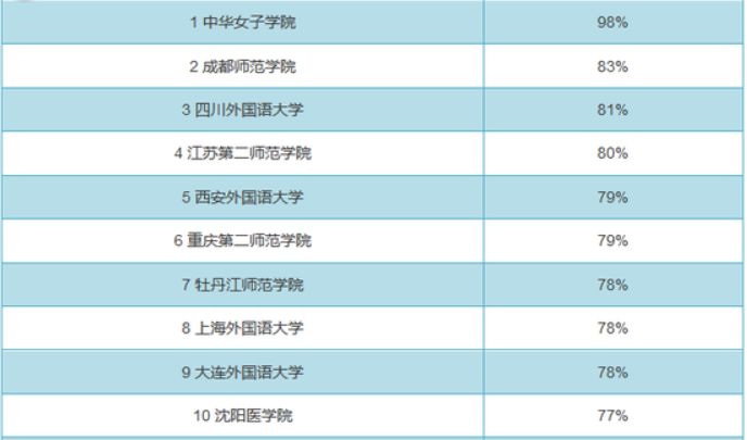 2015年,中國(guó)高校新媒體聯(lián)盟發(fā)布了全國(guó)719所高校男女比例排行榜:前十名中,4所師范類院校和4所外國(guó)語大學(xué)赫然在列。相反,排在榜單后10名的高校中,除1所刑事學(xué)院、2所體育院校外,其余7高校均為理工類大學(xué)。