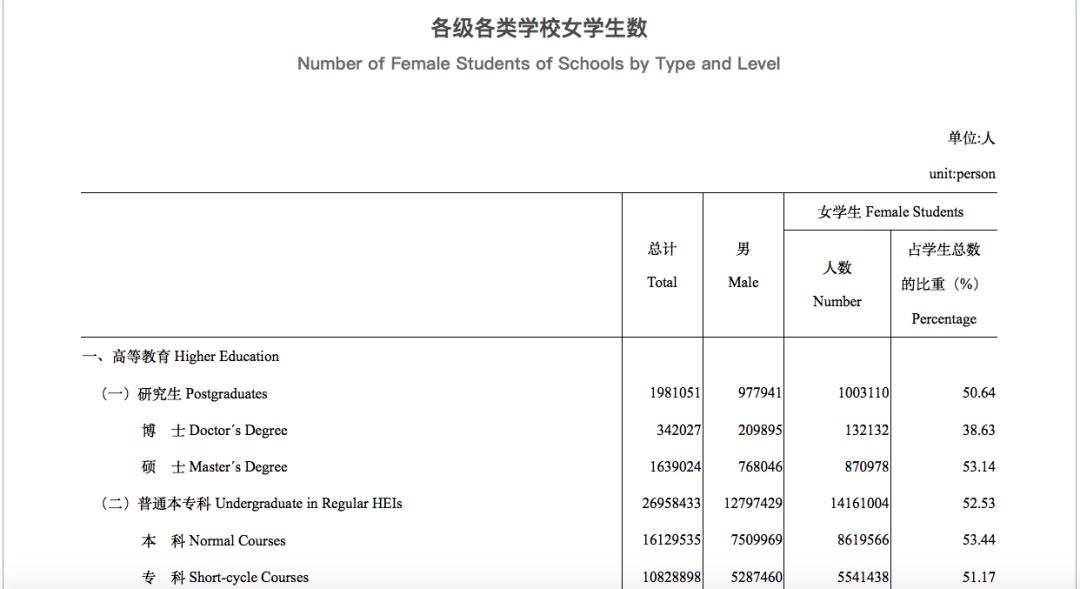 據(jù)中國(guó)教育部統(tǒng)計(jì),自2009年普通本專科女生比重首次超過男生后,男女生數(shù)量差距越來越大。2016年,全國(guó)本科女大學(xué)生人數(shù),比男生多出了111萬,碩士研究生中,女生比男生多了10萬。