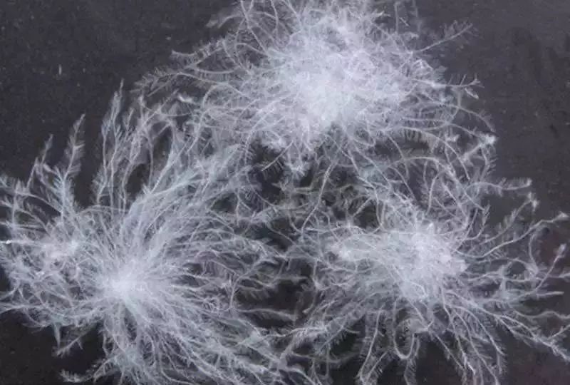 以下兩張圖對比可以看出,正常絨朵中間有一個小白點,稱為絨核,從絨核里出來很多的絨絲像一個個絨球。而膠水絨雖然看起來一團一團,但是沒有絨核,一坨一坨的,這樣的“羽絨”根本不能稱為羽絨。