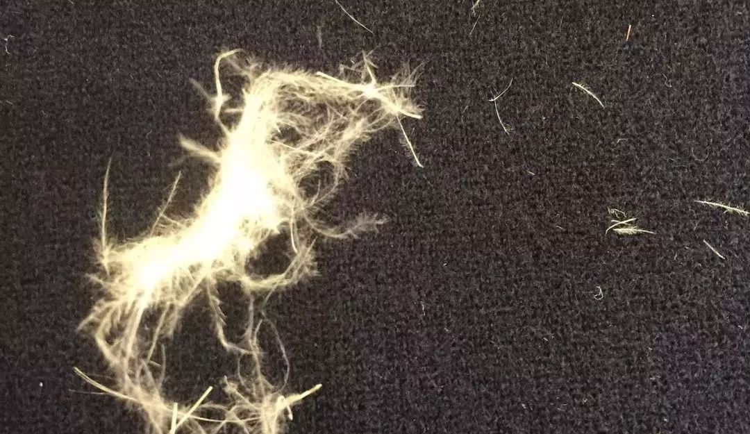 “膠水絨”是一種形象的說法,造假方法是通過膠水粘絨劑將絨絲粘連成朵,然后摻兌到正常的朵絨中,制造高蓬松度的假象,以達到以次充好的目的。與此前摻兌粉碎毛、雞絲絨的造假方式相比,膠水絨更加隱秘。
