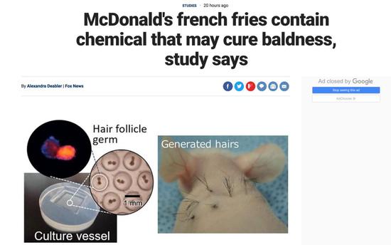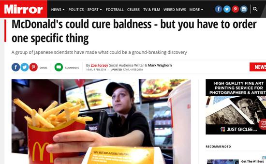日本版的Newsweek網(wǎng)站:“研究表明,麥當(dāng)勞薯?xiàng)l里的化學(xué)成分可以治療禿頭”