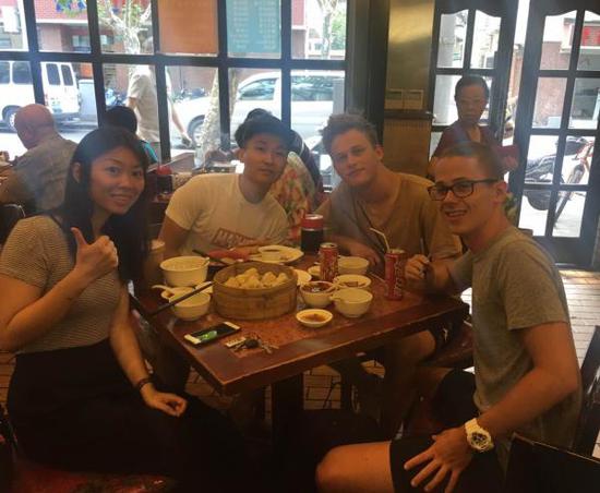 木木(左一)帶著來自世界各地的房客們品嘗上海美食。木木的投入很快獲得了回報,在Airbnb、小豬短租等平臺上,木木的房源總是好評不斷。不止如此,她還收獲了一大批來自世界各地的好友,他們常常會在Facebook上互相問候,還約定以后去彼此的城市拜訪對方。