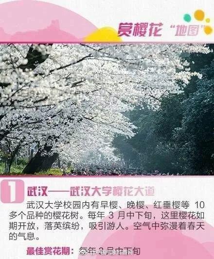 4月,又到一年“花見”時節,櫻花季適逢清明節小長假,8個國內賞櫻勝地——武大、青島中山公園……哪一個更讓你心動?快收了這份春季賞櫻地圖@TA,賞花游約起!