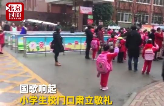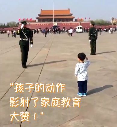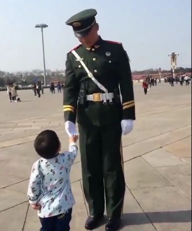 3月27日,北京天安門廣場上一名3歲小朋友看見執勤的武警戰士時,向其莊嚴敬禮,先敬禮后禮畢,很有儀式感。