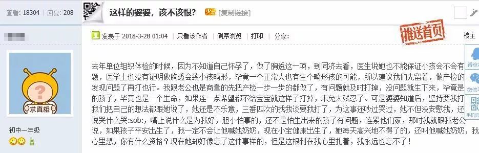 沒想到因為一次體檢,婆媳關系突然十分緊張,甚至在寶寶生下來后,兒媳上網發帖怒懟婆婆。
