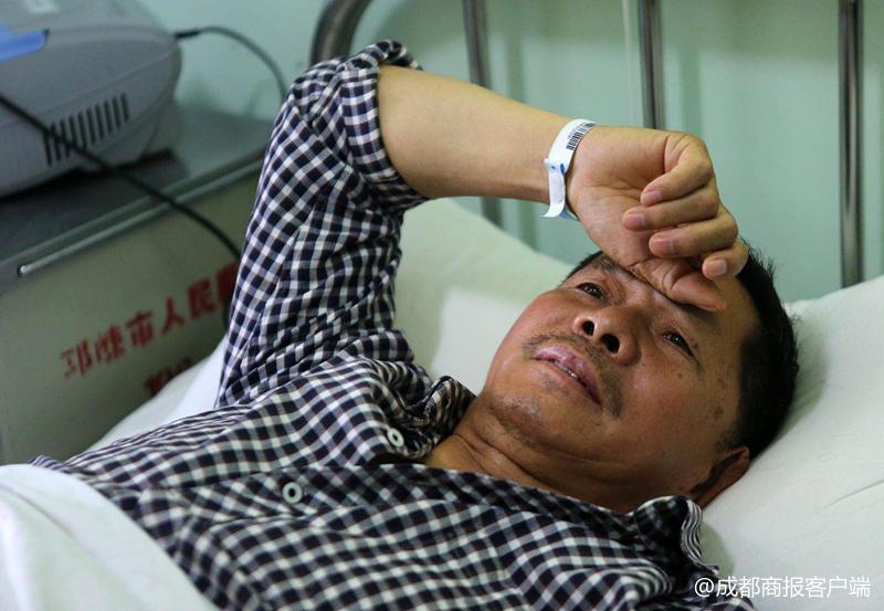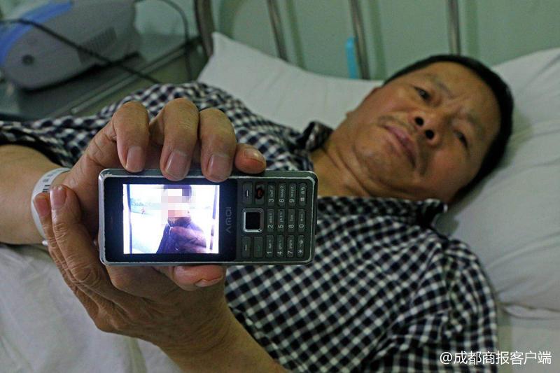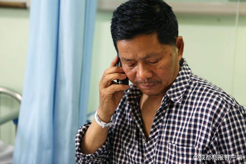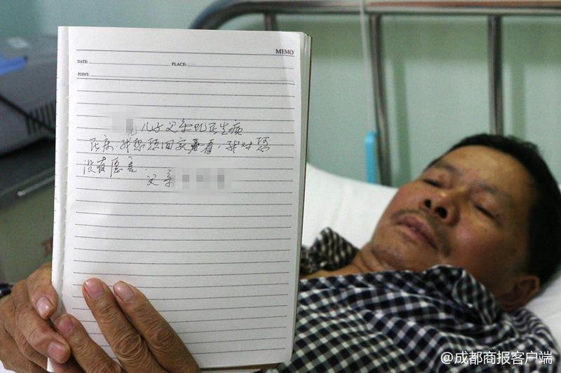 “小虎兒子,父親現在生病在床,我想您回家看一看,我對你沒有怨言。父親彭烈金。”邛崍市人民醫院,63歲的彭烈金從病榻上臥起,紅色的血液在腰部的導管回流,家人讓他趕緊躺下。彭烈金雙手微顫,寫下這段話。