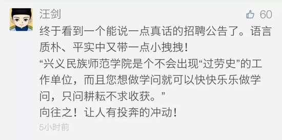 4月25日,一則“興義民族師范學院招聘語言學博士”的招聘啟事在朋友圈火了。網友紛紛評論,并點贊這則招聘啟事的語體“話風”。