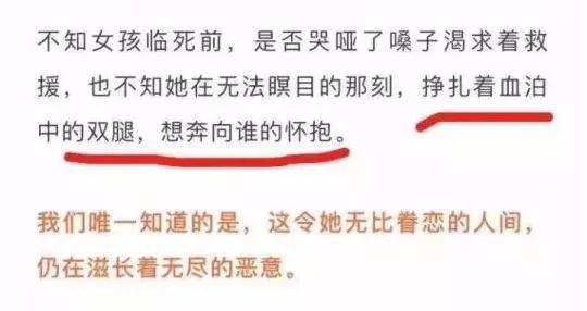 人性被淹沒在色情想象中,看不到對逝者的尊重,看不到對兇手的譴責,看不到對公平正義快點到來的期待,看到的只是文字后面,那洋洋自得的眼神,盯著又一個10萬+。