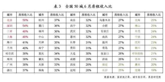 2017年7月上海易居研究院發(fā)布了《50城房租收入比研究》報(bào)告。報(bào)告顯示,2017年6月全國(guó)50個(gè)城市中超七成房租相對(duì)收入較高,其中北京、深圳、三亞、上海等4個(gè)城市房租收入比高于45%,屬于租金嚴(yán)重過(guò)高城市。