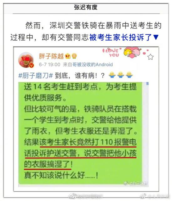 @北京青年報:[交警暴雨天護送考生反被投訴,@深圳交警 回應]