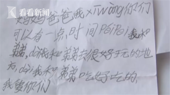 “媽媽、爸爸,我希望你們可以有一點時間陪陪我和弟弟。帶我和弟弟去很好玩的地方,帶我和弟弟去吃好吃的,我愛你們。”