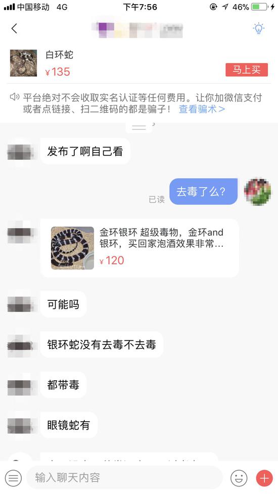馬女士稱,她在事發后向賣家索要了微信賬號,請朋友加了賣家微信。她看到賣家在朋友圈發布了琪琪被毒蛇咬傷的新聞截圖,并提醒其它買家:“希望沒有飼養毒蛇經驗的朋友不要找我拿毒蛇,尤其是銀環五步這些超級毒的?!?span style="background-color: rgb(230, 239, 248); color: rgb(0, 128, 0); font-family: 宋體; font-size: 12px;">
