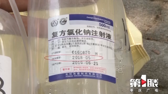 楊大爺的家人朱先生,隨后連夜將老人轉到了合川區中西醫結合醫院,一路上都掛著衛生院的輸液瓶。詢問情況后,這家醫院的護士發現,楊大爺注射的復方氯化鈉注射液,已經過期兩個月了。
