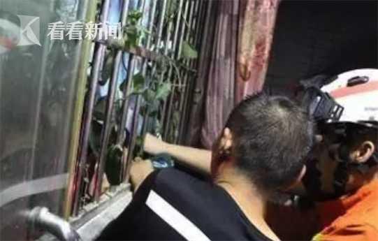 10多分鐘后,4樓住戶家的陽臺防盜窗被消防官兵破拆出了一個一米見方的洞。現場人員攜手,將窗外的女子從洞中營救進了屋內。