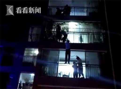 到達事發小區后發現,女子已經從5樓自家的陽臺上跳下。幸虧她的家人和樓下鄰居及時出手,將她死死拉住。可女子整個人已經懸在了4樓和5樓之間的防盜窗外,女子情緒激動,不停地掙扎。拉住她的人絲毫不敢放松,現場處于僵持中。