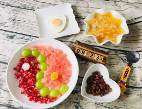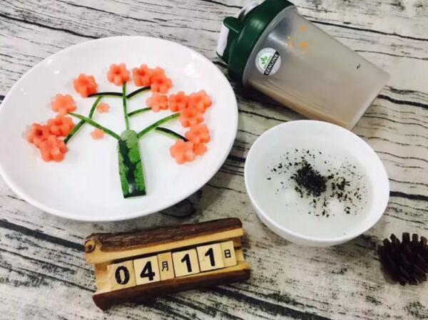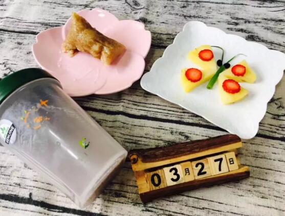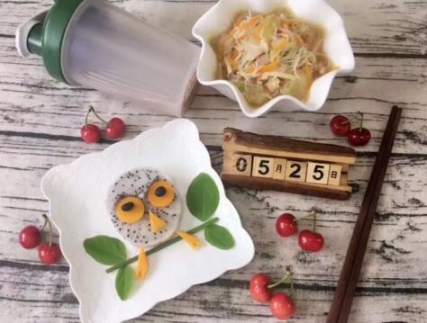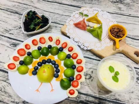 每天的早餐,葉媽媽也會擺成各種造型。“也不是僅僅為了好看,女兒不喜歡吃藍莓,我就把各種水果擺一只蜻蜓,用藍莓當眼睛。她一看,第一口就把藍莓吃掉了。有一次我們鄰居有事,把孩子放我們家,小朋友每天吃早餐都不肯回去了。”