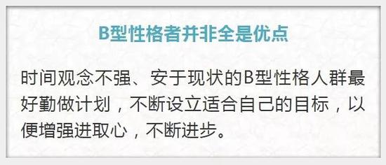 B型性格的行為特點(diǎn)和A型是相反的對(duì)應(yīng)關(guān)系,如果A型性格的常見(jiàn)行為表現(xiàn)你大多都沒(méi)有,那么你可能是B型性格。