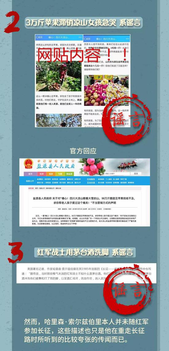 3萬斤蘋果滯銷涼山女孩急哭?紅軍戰士用茅臺酒洗腳?出租車公司否認贈甘A88888?造謠北京動物園丟大象?謠言不止,辟謠不歇。小編為大家整理出最近發生的幾大謠言。一起來看一下,你被哪幾個忽悠了?
