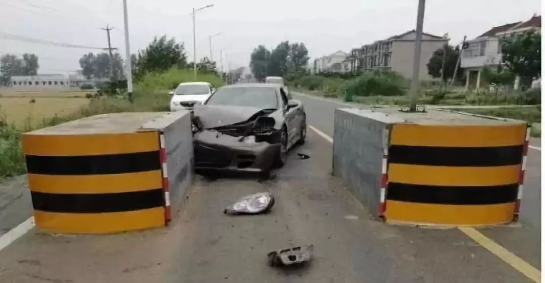 這起事故發生在今年5月29號,一輛保時捷轎車撞上了安徽省省道收費站附近的限寬石墩,車頭損毀嚴重,氣囊彈開。