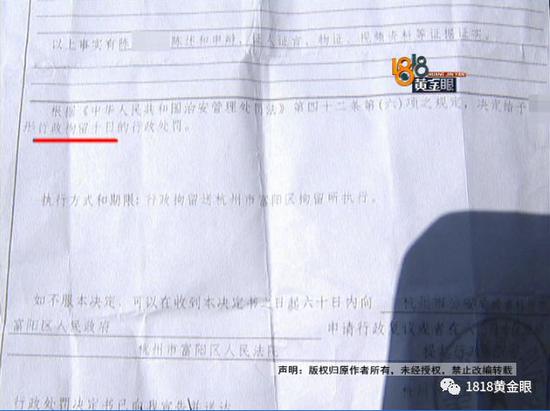 行政處罰決定書顯示,陳某某因侵犯他人隱私,被處以行政拘留10天。至于詳細情況,杭州富陽區(qū)銀湖派出所表示不便接受采訪。