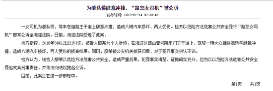 新京報快訊 據北京海淀區人民法院官網消息,一女司機為泄私憤,駕車在道路主干道上肆意沖撞,造成八輛汽車損壞、兩人受傷。檢方以危險方法危害公共安全罪將“路怒女司機”廖某公訴至海淀法院。日前,海淀法院受理了此案。