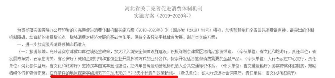 全文中有一行寫道“落實帶薪休假制度,鼓勵錯峰休假和彈性作息,在有條件的地區探索實施周五下午加周末的“2.5天小長假”政策措施。”