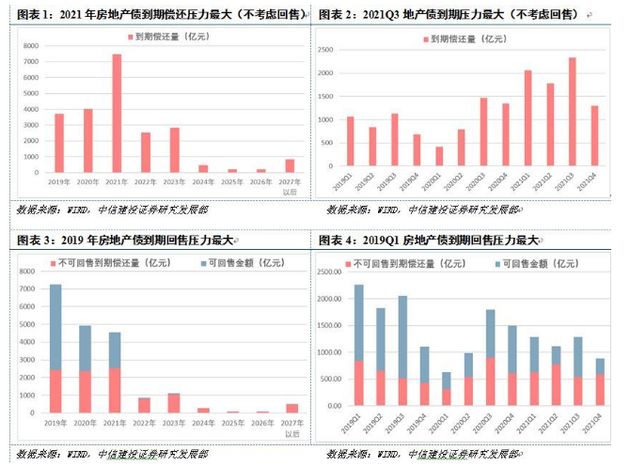 中信建投分析師黃文濤在14日發布的研究報告中指出,存續房地產債到期償還高峰在2021年,但若考慮回售條款,2019年房地產債償還壓力最大。