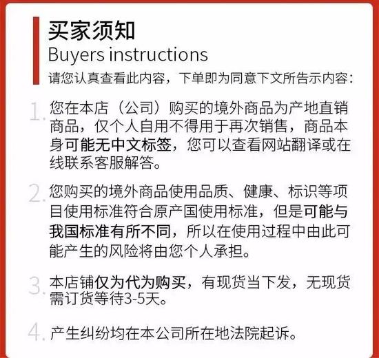 此外,記者在售賣然健環球“諾麗果汁”的電商平臺上還看到一條買家須知,稱顧客所購買的境外商品符合原產國使用標準,但可能與我國標準有所不同,所以在使用過程中由此可能產生的風險將由顧客個人來承擔。