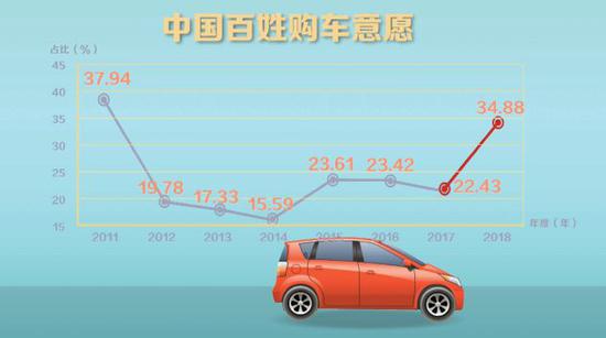 大調查發現,在2019年花錢意愿排行榜上,最引人關注的一匹黑馬是汽車,百姓買車意愿出現反彈回升,高出2018年12.45個百分點,這是汽車近7年來再次沖進百姓消費意愿榜單前三名。買車,人們有些蠢蠢欲動。