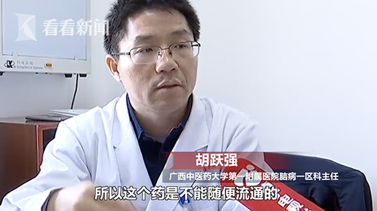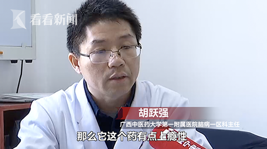 醫(yī)院腦病一區(qū)科主任胡躍強(qiáng):“現(xiàn)在的戒毒所百分之十左右的戒毒的人就是因?yàn)槌粤死种笕旧狭硕景a,這個是一個比較大的一個比例,所以這個藥是不能隨便流通的,也不能亂服用的。”