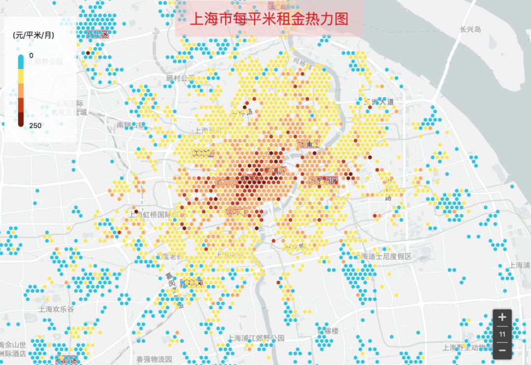 上海市只要地鐵在700以內(nèi),每平米租金變化不大,700以上租金開始明顯下降。
