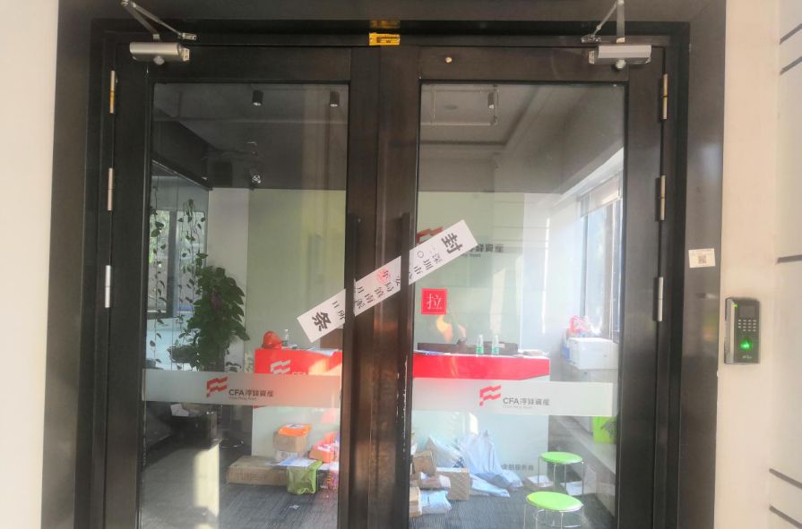 4月23日,券商中國記者來到淳鋒資產的深圳總部實地走訪。在寶安區新安街道創業二路得勝大廈二樓,現場一片狼藉,門上貼有深圳市公安局鎮安派出所的封條,落款時間為2019年4月19日。