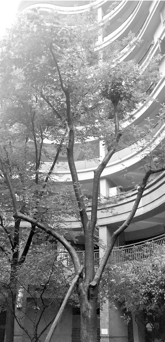 小區內的各種喬木經過多年的自由生長,最高的已經有六七層樓高了,但從來沒有集中修剪過。