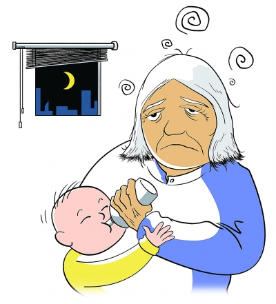橙橙奶奶每天做著蛋羹、肉泥、水果泥,變著花樣地做輔食。晚上睡覺的時候,孩子明明已經合上眼睛,可是一往床上放就哇哇哭喊。“我自己休息的就不好,身體累心里有時候覺著憋悶,晚上常常后半夜才能睡。”