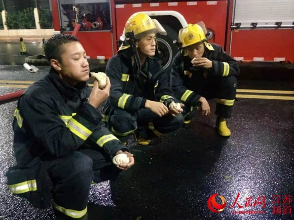 原標題:抗擊“利奇馬”!江蘇太倉消防員搶險間隙連吃11個包子走紅網絡