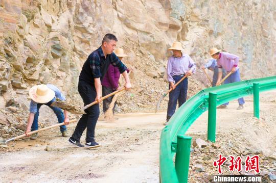 左青松(左2)和村民一起維護茶丘公路 楊威 攝